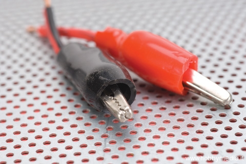 Coi coccodrilli entro nella guaina tagliata fino a toccare i cavi in rame e la lampadina si accende.